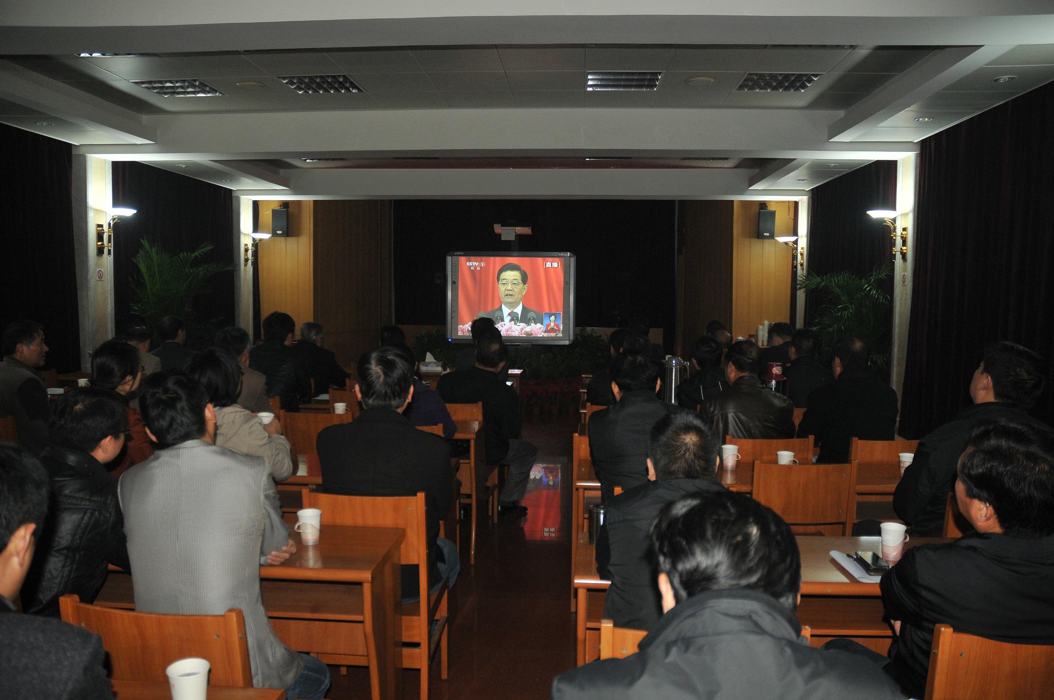 建工控股機關組織收看中國共產黨第十八次全國代表大會開幕式 時間:2012-11-094496 11月8日上午9時,舉世矚目的中國共產黨第十八次全國代表大會在北京勝利開幕。建工控股機關組織中層以上管理人員和黨員在一樓大會議室集中收看開幕式現場直播。