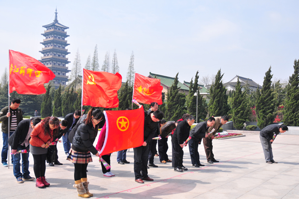 總部開展祭掃革命烈士墓活動 時間:2013-04-034151 4月3日,總部機(jī)關(guān)黨支部和團(tuán)委聯(lián)合開展祭掃革命烈士墓活動,總部機(jī)關(guān)、華建置業(yè)20余名同志參加。紀(jì)委副書記、黨辦主任陳緒寶主持活動,副總經(jīng)理兼總工程師程杰帶領(lǐng)大家向烈士紀(jì)念碑三鞠躬,并敬獻(xiàn)了鮮花,隨后大家共同參觀了烈士英雄事跡展。
