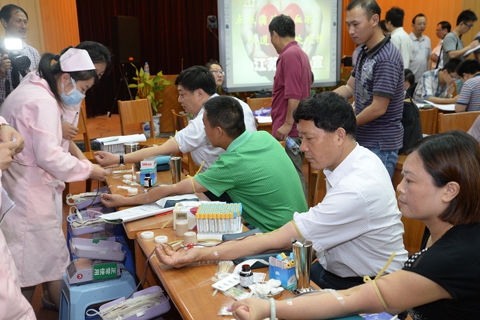 建控系統組織無償獻血活動 時間:2014-07-304209 每年組織干部職工參加全市無償獻血活動已成為建工控股公司長年堅持的一項精神文明建設的常態工作。自2002年以來,公司連續12年被上級評為無償獻血先進單位。 7月29日上午,公司再次組織系統干部職工在公司一樓會議室參加無償獻血活動。此次活動得到了系統各單位大力支持,建控公司領導吳士茂、錢啟明帶頭參加,系統共有164名干部職工參加了無償獻血活動。值得一提的是,江蘇華建員工陳剛,已連續7年捐獻血小板,每年捐獻6次,總獻血量已超過一萬毫升,為系統員工樹立了榜樣。
